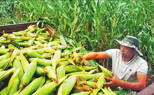 北大荒哈爾濱現(xiàn)代服務有限公司紅旗分公司騰碩達農(nóng)業(yè)發(fā)展有限公司工人正在采收青玉米。