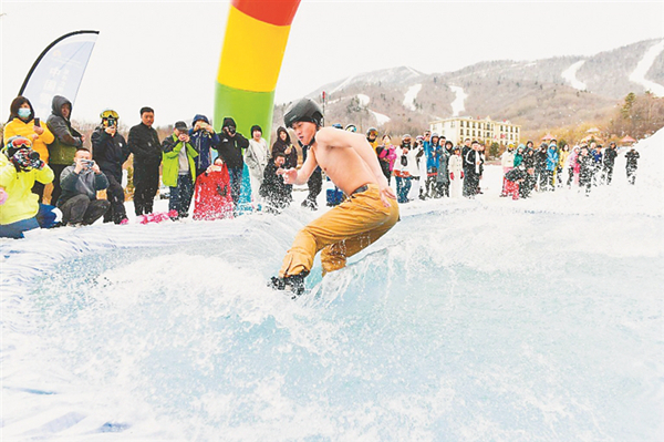 開(kāi)幕式結(jié)束后,參加活動(dòng)的發(fā)燒友們乘纜車前往三鍋盔山頂參加光豬大滑行活動(dòng)。此次光豬節(jié)由亞布力滑雪旅游度假區(qū)主辦,亞布力陽(yáng)光度假村承辦。在長(zhǎng)達(dá)146天的超長(zhǎng)雪季后,亞布力陽(yáng)光度假村將于3月29日正式封板。圖片由亞布力陽(yáng)光度假村提供