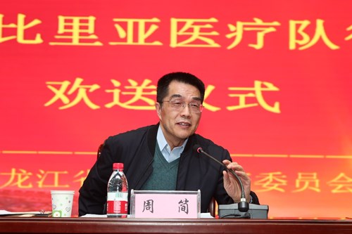 周簡(jiǎn)書(shū)記代表國(guó)家衛(wèi)生健康委,以“再武裝、再出發(fā)、再戰(zhàn)斗”為題,從思想準(zhǔn)備、組織準(zhǔn)備、技術(shù)準(zhǔn)備、物資準(zhǔn)備等四個(gè)方面向醫(yī)療隊(duì)寄語(yǔ)。他指出,中國(guó)對(duì)外衛(wèi)生援助淵遠(yuǎn)流長(zhǎng),在半個(gè)多世紀(jì)的時(shí)間里,黑龍江省共派出1030人次醫(yī)務(wù)工作者參與了援外醫(yī)療工作,積極踐行國(guó)際人道主義精神,勇于克服種種困難,砥礪前行,為受援國(guó)留下了“帶不走的醫(yī)療隊(duì)”。醫(yī)療隊(duì)促進(jìn)了當(dāng)?shù)蒯t(yī)療衛(wèi)生事業(yè)的發(fā)展,有力地支持了我國(guó)的外交工作,為推進(jìn)人類和平與發(fā)展的崇高事業(yè)做出了貢獻(xiàn)。當(dāng)前,面對(duì)全球肆虐的新冠肺炎疫情,中非合作抗疫刻不容緩,醫(yī)療隊(duì)員面臨的任務(wù)更艱巨,但是使命光榮。
