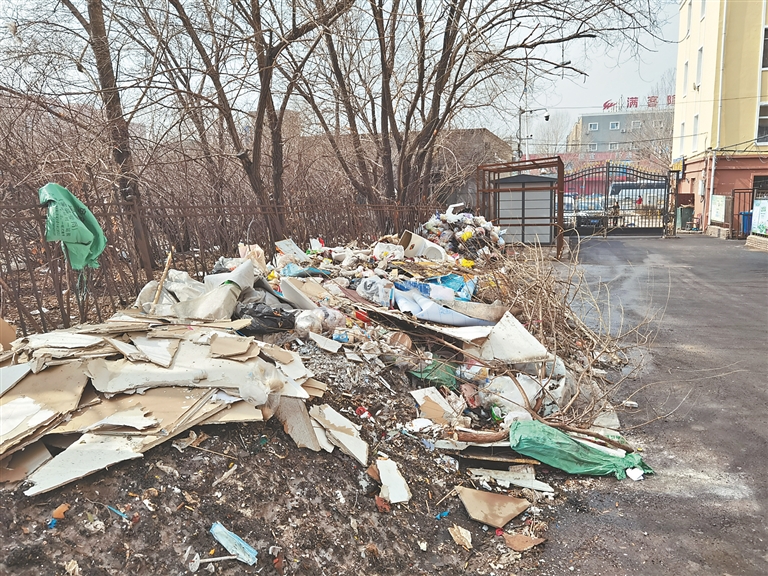 南崗區(qū)學(xué)府路300號(hào)至308號(hào)之間,是一片改造后的老舊小區(qū),一側(cè)大門還有戴紅袖標(biāo)的人員看守。進(jìn)入后,道路一側(cè)出現(xiàn)了垃圾帶,生活垃圾、裝修垃圾、放棄雜物和殘冰殘雪,堆出了20米的“長(zhǎng)龍”。據(jù)這里的居民介紹,小區(qū)沒有物業(yè),衛(wèi)生由街道管理。“由于長(zhǎng)期不外運(yùn),天熱的時(shí)候,這里的垃圾會(huì)很臭。其實(shí)小區(qū)環(huán)境還不錯(cuò),就是缺少管理?!?/span>