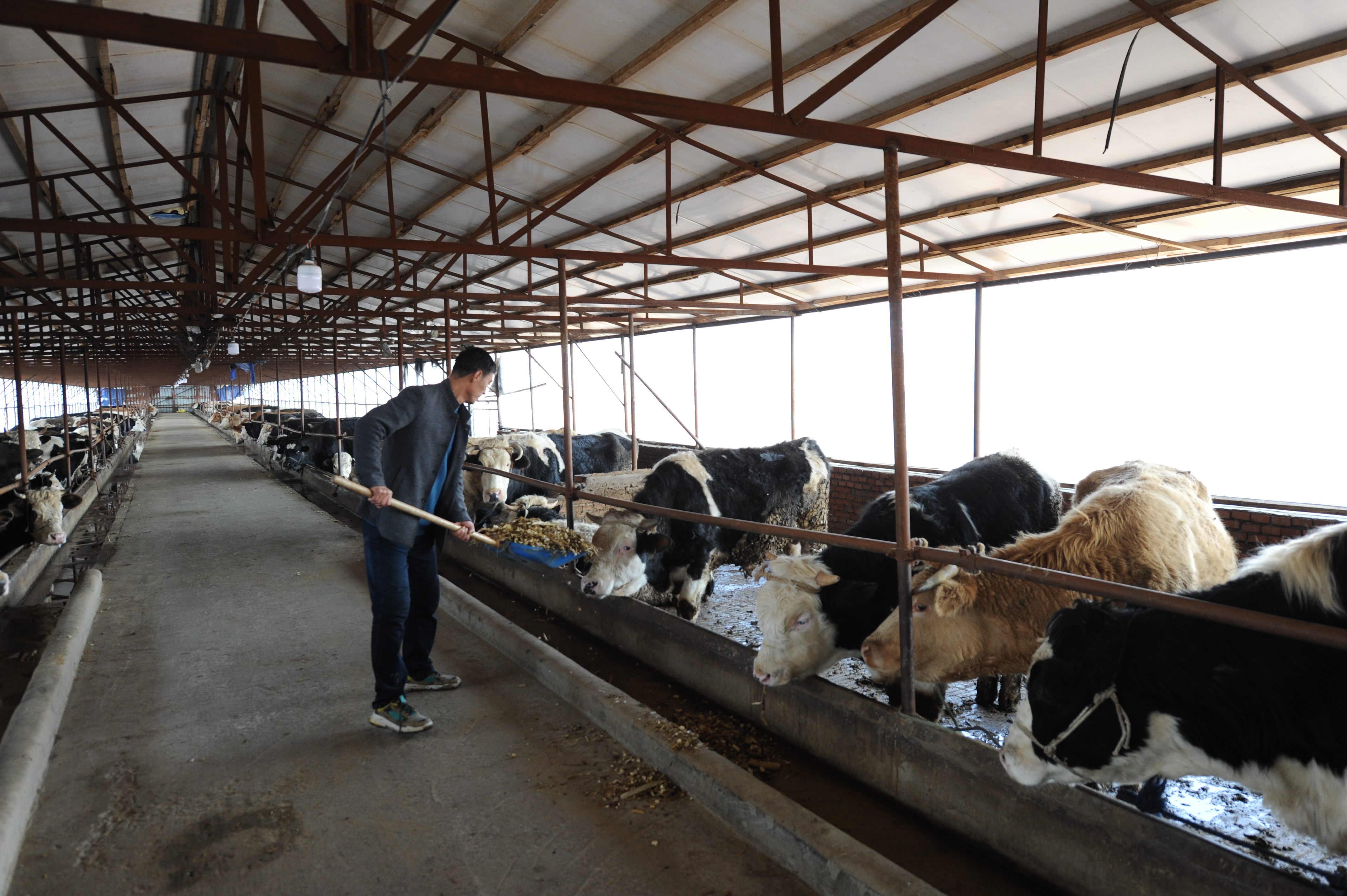 賓縣規(guī)?;B(yǎng)殖戶整潔寬敞的牛棚