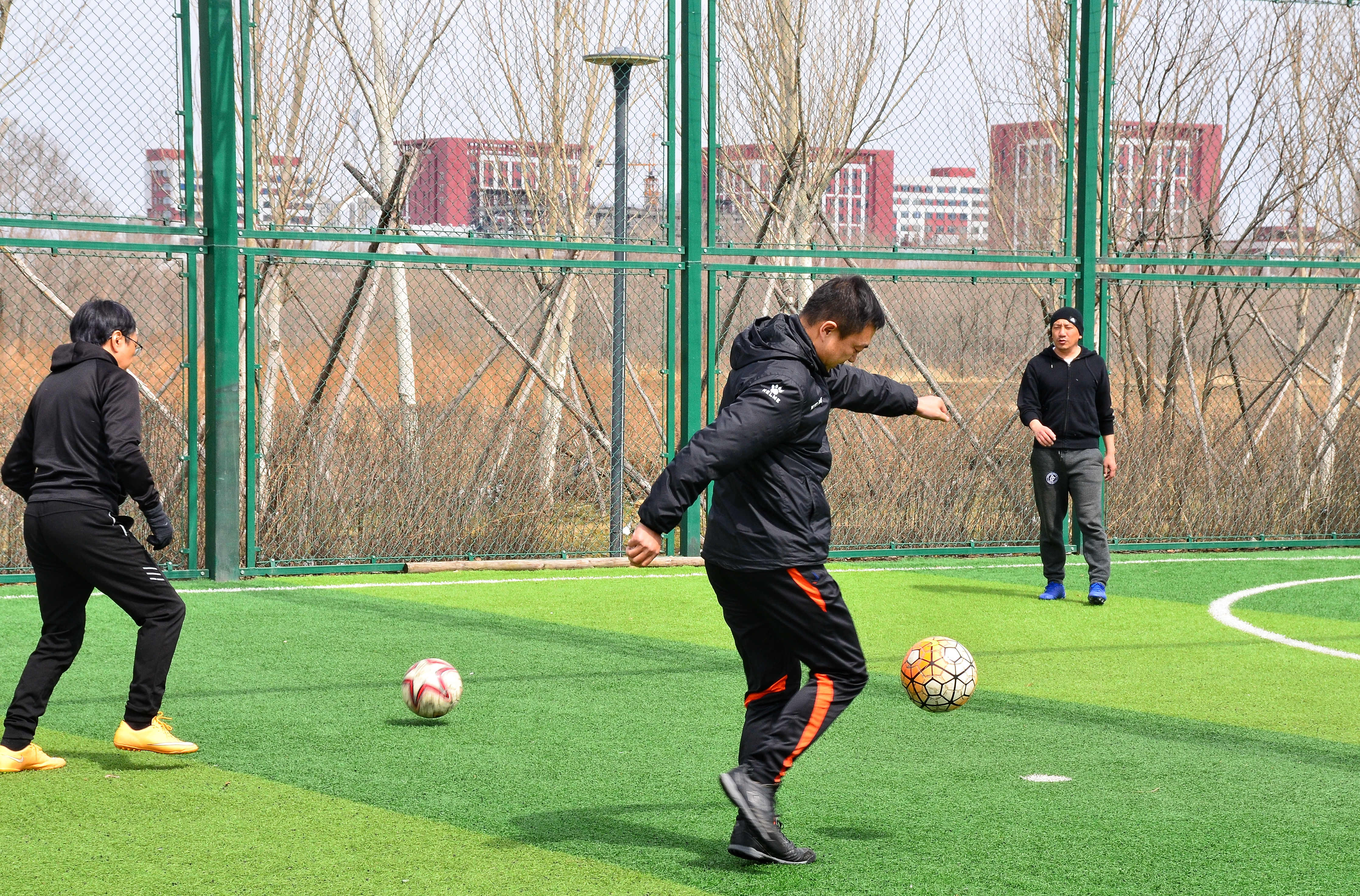 市民在航天公園踢球