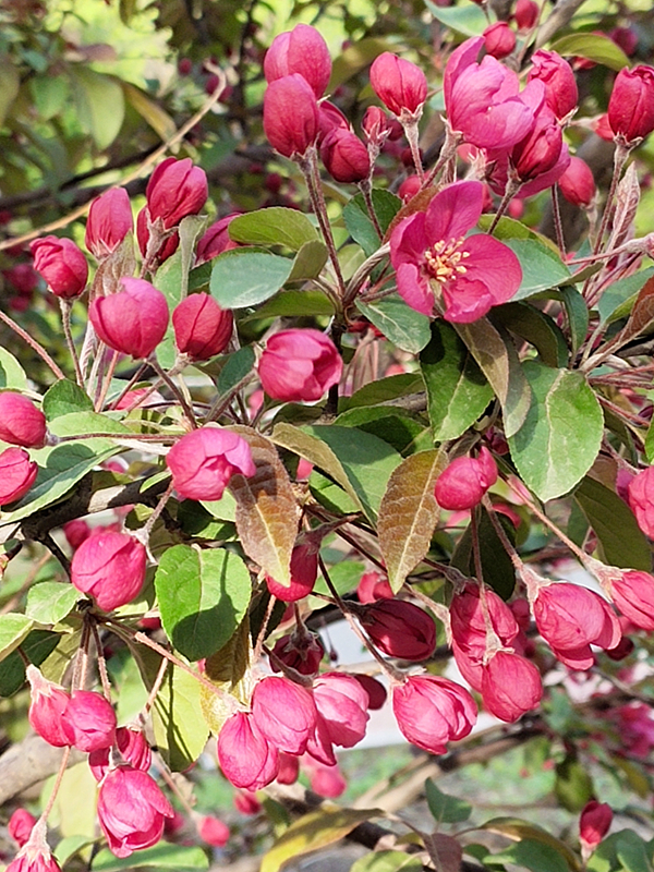 我省地處高海拔地區(qū),冬季寒冷,海棠能生長開花較為罕見。(祝東)