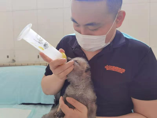 據(jù)工作人員介紹,5月上旬,哈爾濱極地公園北極狼家族新生多只北極狼寶寶。為保證母狼和新生小狼的安全,馴養(yǎng)師24小時通過監(jiān)控觀察北極狼媽媽和寶寶的情況。三天后,一只狼媽媽出現(xiàn)奶水不足、棄養(yǎng)小狼的情況。為保證狼寶寶的安全,馴養(yǎng)師決定將狼寶寶采用全人工技術(shù)飼養(yǎng),取得了成功。