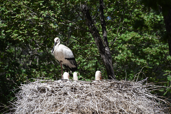 動物寶寶出生最多的地方當(dāng)屬繁育中心,目前今年已經(jīng)出生了9只小鶴。分別是5只小丹頂鶴和4只小白枕鶴,它們現(xiàn)在在園子里一起活動,同吃同睡,不過小丹頂鶴們顯得不太友善,年紀(jì)輕輕地就已經(jīng)表現(xiàn)出鶴中“戰(zhàn)斗鶴”的姿態(tài),常常追著小白枕鶴到處跑。不過一般追到飯碗附近,它們就逐漸忘記自己是“戰(zhàn)斗鶴”這件事了,轉(zhuǎn)身投奔到“吃貨”的行列中。