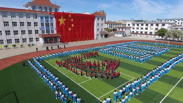 童心永向黨、歡歌慶六一,呼瑪縣第一小學(xué)的操場(chǎng)上,由全校600余名師生共同組成黨徽、100的造型圖案,在四層樓高的巨幅國(guó)旗映襯下,蔚為壯觀,一面面小紅旗在學(xué)生們手中揮舞,師生們懷著崇敬的心情,共同演唱《沒(méi)有共產(chǎn)黨就沒(méi)有新中國(guó)》。氣勢(shì)磅礴的開場(chǎng)節(jié)目,表達(dá)了呼瑪縣廣大師生學(xué)黨史、頌黨恩、跟黨走,隆重慶祝建黨100周年的激動(dòng)心情。