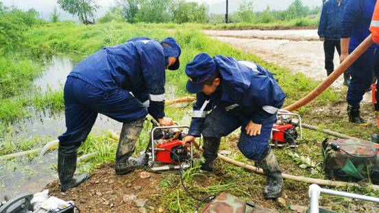 呼源鎮(zhèn)立即上報,呼中區(qū)主要領導得知后立即趕赴現場親自指揮,呼源鎮(zhèn)聯合大興安嶺地區(qū)森林消防支隊呼中大隊和呼中城鎮(zhèn)消防救援大隊,共出動人員30余人,結合地形地貌采取多設備抽水排澇的方式,分成5組,經過4臺2噸抽水設備、1臺4噸抽水設備2個多小時的不間斷作業(yè),水位明顯下降,守護了用電安全。