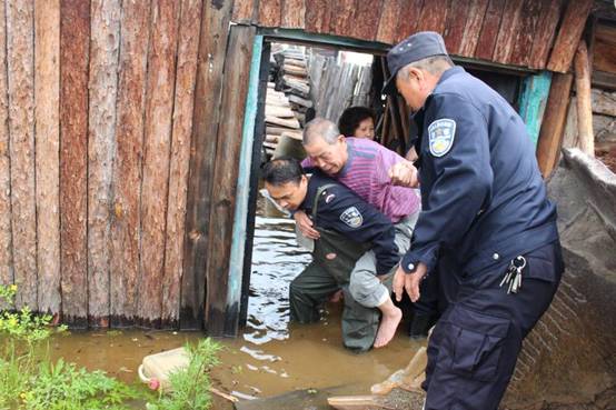 呼源鎮(zhèn)位于呼瑪河上游,是出現內澇最嚴重的城鎮(zhèn),6月18日凌晨3時,呼源鎮(zhèn)接到養(yǎng)豬戶孟慶波的求助,家中進水,家里的35頭豬、30余只雞需要轉移。鎮(zhèn)里接到求助后,地企聯手,在50余名呼源撲火隊員和10名呼源鎮(zhèn)機關工作人員的幫助下,經過三個小時的奮戰(zhàn),終于將孟慶波家的豬、雞轉運到安全地帶,幫她挽回了4萬多元的損失。同時,呼源鎮(zhèn)派出所排查被淹住戶情況,發(fā)現居民柳來玉被積水困在家中,由于老人行動不便,民警涉水深入家中,將老人背出家中,安頓在旅店休息。