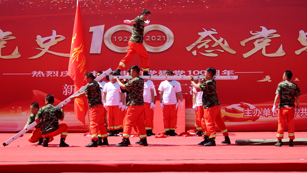 新林林業(yè)局黨委副書記、局長張鶴松為演出致辭。演出在森林消防二大隊(duì)隊(duì)員激昂的鼓聲中拉開了帷幕,本次文藝匯演共13個(gè)節(jié)目,通過歌舞、詩朗誦、快板、大合唱等形式,回顧黨的光輝歷程,謳歌黨的豐功偉績。