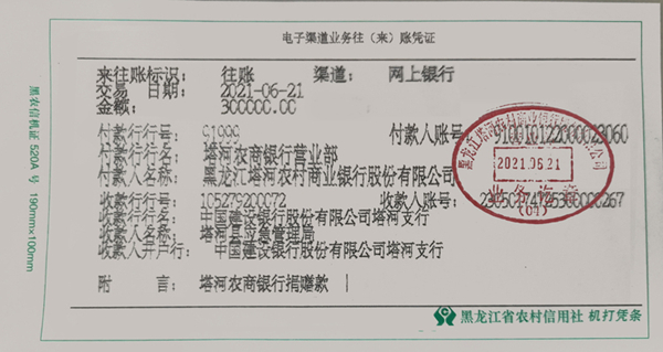 為更好地支持塔河縣應(yīng)對汛情,戰(zhàn)勝洪災(zāi), 6月21日,塔河農(nóng)商銀行在上級銀行的大力支持下,簡化手續(xù),特事特辦,第一時(shí)間向塔河縣人民政府捐贈救災(zāi)款項(xiàng)30萬元,用于塔河縣抗洪救災(zāi)工作,奉獻(xiàn)了農(nóng)商銀行廣大干部職工的一份愛心。