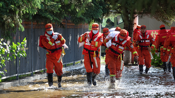 18日凌晨,記者在位于塔河鎮(zhèn)中央大街東端的塔河農(nóng)商銀行機(jī)關(guān)辦公樓前看到,漲勢很快的洪水正迅猛地漫過中央大街,向街邊的農(nóng)商銀行機(jī)關(guān)大樓、稅務(wù)局辦公樓和電視臺辦公樓等處涌來,而這幾個(gè)沿街單位地勢較低,很容易受到洪水的侵襲。為盡量控制洪水水勢,最大限度減少洪水造成的損失,塔河縣防指迅速調(diào)集人力物力,主要領(lǐng)導(dǎo)靠前指揮,廣大救援官兵奮勇爭先,在幾個(gè)臨街單位外圍用沙袋圍壩攔堵,并調(diào)動多臺高壓水泵抽水抗?jié)常o幾個(gè)單位的救援提供了極大地助力,也為其自救創(chuàng)造了更多的時(shí)機(jī)。