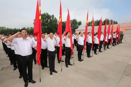 本次活動主會場設在塔河縣森林防火辦公室廣場,共分為5個部分,分別是老黨員為預備黨員佩戴黨徽;局處級以上領導及“五大先鋒”為支部書記授旗;新黨員進行入黨宣誓,老黨員重溫入黨誓詞;全體黨員干部合唱紅色歌曲《沒有共產(chǎn)黨就沒有新中國》以及與黨旗合影。