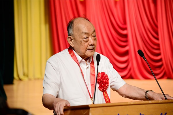 大會為“光榮在黨50年”的老黨員代表頒發(fā)紀念章,楊士莪院士作為黨齡56年的老黨員,發(fā)表了獲獎感言,他說,“我們這批在黨的關懷和培養(yǎng)教育下成長起來的一代,在黨的百年生日的時候,說實話心里千言萬語不知從何說起,要不然我就唱兩句現(xiàn)在電視上經(jīng)常聽到的歌曲。”楊院士深情唱響《唱支山歌給黨聽》,他說:“我的聲音雖然不好聽,但是這首歌能夠表達我的心意。唱支山歌給黨聽,我把黨來比母親……”。楊士莪院士的歌聲讓在場師生非常意外,這首沒有經(jīng)過彩排的歌曲,卻因真情實感走進了師生們的心里,在他的帶動下,在場師生也情不自禁地鼓掌打拍跟唱起《唱支山歌給黨聽》,“母親只生了我的身,黨的光輝照我心?!?/span>