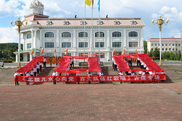 開展“高歌頌黨恩 永遠(yuǎn)跟黨走”唱紅歌活動。在生產(chǎn)一線、機關(guān)科室的400多名黨員干部、職工群眾用百米長幅歌頌黨、感謝黨,齊聲高唱《沒有共產(chǎn)黨就沒有新中國》《歌唱祖國》,激情嘹亮的歌聲唱出了對中國共產(chǎn)黨的熱愛和禮贊。全體隊員還用黨旗和紅綢擺出了100的造型,以特殊的方式向建黨100周年獻(xiàn)禮,充分展現(xiàn)了新時代林區(qū)礦山人愛黨愛國的精神風(fēng)貌。