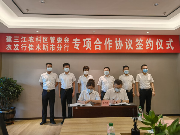 黑龍江經(jīng)濟網(wǎng)訊(郭明儒 王鐵鑫)8月4日,農(nóng)發(fā)行佳木斯市分行與黑龍江建三江國家農(nóng)業(yè)科技園區(qū)管理委員會(以下簡稱建三江農(nóng)科區(qū)管委會)簽署專項合作協(xié)議。農(nóng)發(fā)行佳木斯市分行黨委書記、行長于智源,黨委委員、副行長張洪昌,建三江農(nóng)科區(qū)管委會黨工委副書記、管委會主任牟秀玲,管委會領(lǐng)導(dǎo)衣志輝、李慶飚、李彩麗等出席簽約儀式。