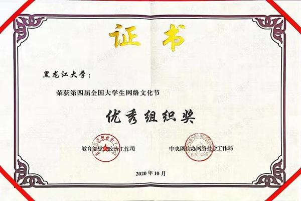 黑龍江大學(xué)一直高度重視網(wǎng)絡(luò)思政教育,曾獲全國(guó)大學(xué)生網(wǎng)絡(luò)文化節(jié)優(yōu)秀組織獎(jiǎng)、全國(guó)大學(xué)生網(wǎng)絡(luò)文化節(jié)和全國(guó)高校網(wǎng)絡(luò)教育優(yōu)秀作品推選活動(dòng)一等獎(jiǎng)、二等獎(jiǎng)等多項(xiàng)榮譽(yù)。作為黑龍江省高校網(wǎng)絡(luò)思政中心的依托建設(shè)高校,黑龍江大學(xué)承辦了3屆黑龍江省大學(xué)生網(wǎng)絡(luò)文化節(jié)和黑龍江省高校網(wǎng)絡(luò)教育優(yōu)秀作品推選展示活動(dòng),累計(jì)評(píng)選5000余件黑龍江省高校優(yōu)秀師生網(wǎng)絡(luò)文化作品,并推選出1882件黑龍江省優(yōu)秀高校師生作品參加全國(guó)評(píng)選。今后,黑龍江大學(xué)將繼續(xù)強(qiáng)化思想引領(lǐng),聚焦立德樹(shù)人,依托黑龍江省高校網(wǎng)絡(luò)思政中心,引領(lǐng)全省高校構(gòu)建新時(shí)代高等教育網(wǎng)絡(luò)思想政治工作體系。