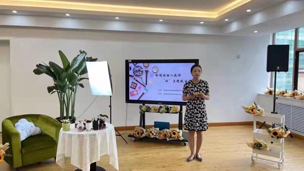 活動(dòng)現(xiàn)場(chǎng)溫馨、淡雅,一簇簇美麗的鮮花裝扮會(huì)場(chǎng),烘托出濃濃的節(jié)日氛圍?;顒?dòng)中,省直三園教師張?zhí)煅鬄槔蠋焸冏隽艘粓?chǎng)關(guān)于化妝的講座。從化妝類型、工具,到化妝技巧以及化妝品的使用,詳細(xì)進(jìn)行了分析、指導(dǎo),并就大家平時(shí)比較關(guān)心的日常和舞臺(tái)妝容兩部分進(jìn)行講解。為了讓大家有直觀認(rèn)識(shí),現(xiàn)場(chǎng)還進(jìn)行了化妝演示,激發(fā)了大家參與的熱情,現(xiàn)場(chǎng)掌聲不斷。
