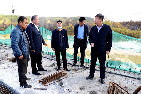 林業(yè)局黨委副書記、局長(zhǎng)韓鳳泉(右一)深入在建楚龍溝大橋現(xiàn)場(chǎng)落實(shí)泄洪措施,確保國(guó)道G111安全。