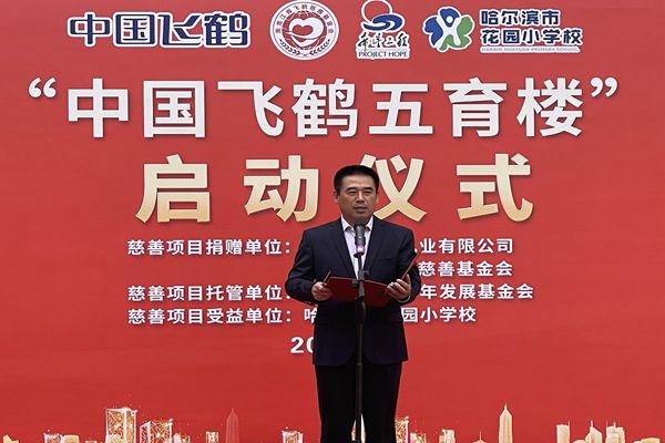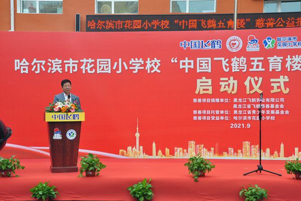 飛鶴乳業(yè)黨委書記、飛鶴慈善基金會理事長朱天龍在啟動儀式上說,在中秋國慶即將到來之際,我們滿懷喜悅的心情,在百年名校哈爾濱市花園小學(xué)校舉行“中國飛鶴五育樓”公益慈善助教項目啟動儀式,這是飛鶴乳業(yè)履行社會責(zé)任、情系教育事業(yè)的又一項助教工程。在黑龍江省貫徹落實(shí)黨中央“雙減”政策,深入推進(jìn)五育并舉,促進(jìn)學(xué)生德智體美勞全面發(fā)展的重要時期。飛鶴向哈爾濱市花園小學(xué)捐贈625萬元,用于花園小學(xué)“五育樓”項目改造,這是一項利在當(dāng)代,功在千秋的公益慈善助教項目,旨在更好地優(yōu)化我省基礎(chǔ)教育教師學(xué)習(xí)培訓(xùn)環(huán)境,為花園小學(xué)教學(xué)提供更好的辦學(xué)條件,也是助力黑龍江省基礎(chǔ)教育的改革。省教育廳副廳長姜同河、團(tuán)省委副書記張濤對飛鶴乳業(yè)的慈善助教善舉給予充分的肯定和贊許?;▓@小學(xué)校長曹永鳴代表學(xué)校的孩子們向飛鶴乳業(yè)的慈善捐助表達(dá)深深的謝意!
