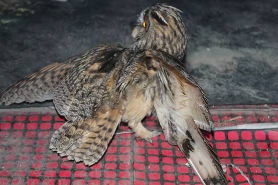 黑龍江經(jīng)濟網(wǎng)訊(韓強 崔紅霞 記者馬朝林)近日,大興安嶺林業(yè)集團公司新林林業(yè)局大烏蘇林場致電林業(yè)局森林資源管理科,稱在林場職工自家庭院中發(fā)現(xiàn)了一只受傷的像貓頭鷹的大鳥。接到電話后,林業(yè)局資源管理科野生動物救助管理人員迅速趕到大烏蘇林場,通過進一步觀察,這只大鳥靜臥在庭院中,其右側(cè)翅膀有明顯傷痕且體質(zhì)較弱,導(dǎo)致無法自由飛翔,初步判斷應(yīng)該是飛行過程中撞擊所致。