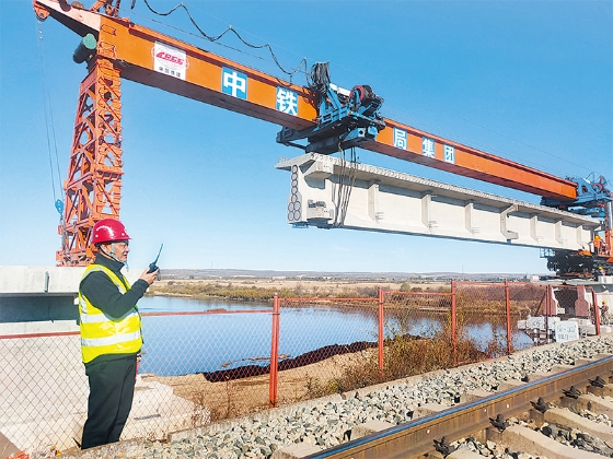 據(jù)介紹,前不久北黑鐵路升級改造工程新建24座鐵路橋中的另一座孫吳段大河口中橋架梁已經完成。橋梁位于孫吳縣境內,橋長112.73米,孔跨布置為3×32米,下部結構和T梁預制施工由中鐵十局完成,梁體架設由中鐵十六局集團第五工程有限公司負責完成。