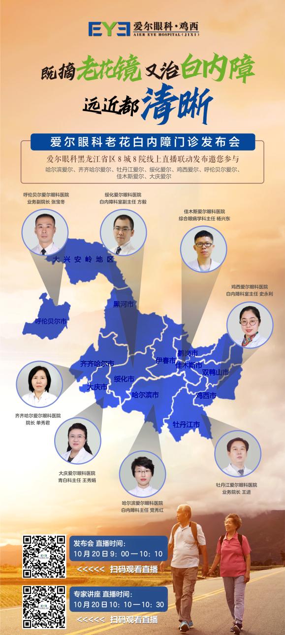 10月20日上午9點整,愛爾眼科黑龍江省區(qū)8城8院線上直播聯(lián)動發(fā)布會邀您參與,帶您直擊老花白內障手術,為中老年人群的優(yōu)質視野和高品質生活保駕護航。(愛爾眼科)