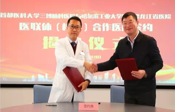 黑龍江經(jīng)濟(jì)網(wǎng)訊(林穎 董宇翔 梁新立) 10月19日,黑龍江省醫(yī)院與首都醫(yī)科大學(xué)三博腦科醫(yī)院結(jié)成醫(yī)聯(lián)體簽約揭牌儀式在北京舉行。今后雙方將在遠(yuǎn)程會(huì)診、技術(shù)指導(dǎo)與支持、人才培養(yǎng)和資源共享等多方面開展緊密合作,攜手共進(jìn),優(yōu)勢(shì)互補(bǔ),共同提高在神經(jīng)科學(xué)領(lǐng)域臨床、科研及教學(xué)水平,提升醫(yī)療服務(wù)能力,切實(shí)為黑龍江省及周邊地區(qū)百姓提供優(yōu)質(zhì)的醫(yī)療衛(wèi)生服務(wù)。