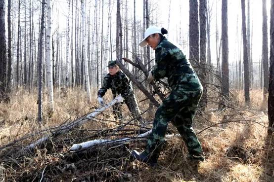 在撫育作業(yè)現(xiàn)地,寒冷的風(fēng)吹拂著干部職工的面龐,腳下過膝高的雜草直往鞋里鉆,一不小心就會(huì)踩進(jìn)冰冷的積水中。雖然工作環(huán)境較為艱苦,可沒有一個(gè)人掉隊(duì)退出,大家沒有牢騷,沒有埋怨,認(rèn)真撿拾著被壓木、腐朽木、枯死木、站桿、藤條及老舊伐根等影響中幼林生長的木材。雖然機(jī)關(guān)干部職工大多數(shù)人以前都沒有從事過森林撫育工作,但經(jīng)過前期培訓(xùn)和現(xiàn)地實(shí)踐,大家對撫育技術(shù)操作要領(lǐng)很快掌握嫻熟,一字排開有序地清林歸堆,彼此間默契呼應(yīng),不一會(huì)現(xiàn)地就出現(xiàn)了橫山碼放整齊的枝丫堆。