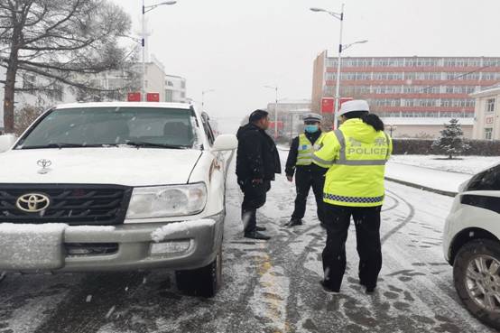 在風雪中執(zhí)勤的呼瑪縣公安局交警大隊大隊長馬龍江介紹說,“今天是我縣全員核酸演練,又恰逢迎來我縣入冬以來首場降雪,路面形勢復雜,我大隊全體人員全部在崗在位,以確保全員核酸演練順利開展?!?/span>