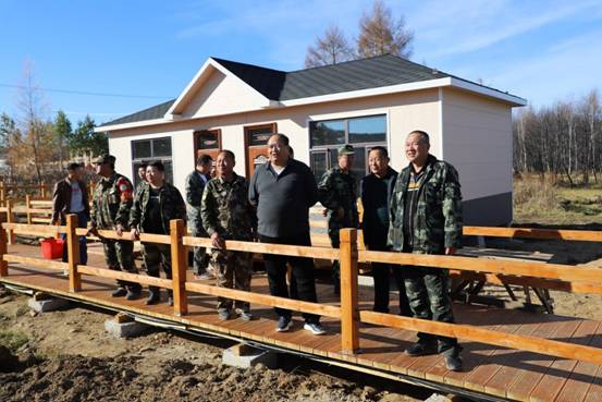 阿木爾林業(yè)局黨委書記胡守慶(右四)檢查指導(dǎo)興安林場(chǎng)精品民宿,發(fā)展旅游產(chǎn)業(yè)(王力 攝)