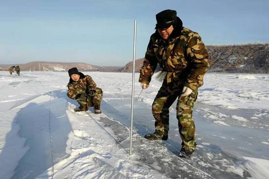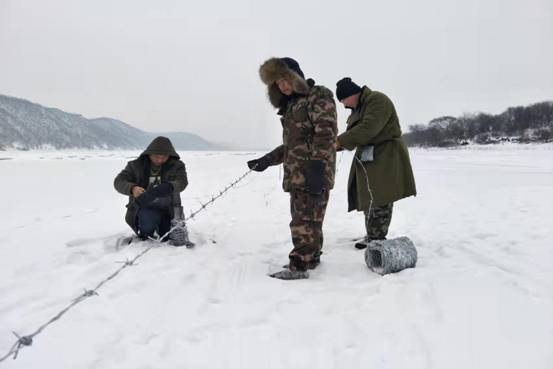 為進(jìn)一步做好防境外疫情輸入工作,最大限度的保護(hù)好人民群眾的生命健康安全,當(dāng)?shù)卣疀Q定在界江沿線架設(shè)防疫隔離墻,阻擋境外物種帶入病毒。紅星林場在接到任務(wù)后,迅速組織人力物力投入戰(zhàn)斗。冰封的江面在冬季暗藏危機(jī),看似一平如鏡的冰下有很多封凍時(shí)形成的漏斗,白雪覆蓋下的區(qū)域更是潛藏著無數(shù)的冰縫,一腳踏進(jìn)去就會(huì)造成嚴(yán)重的扭傷,而在冰面上放線拉網(wǎng)需要每天抬著幾十斤的鐵蒺藜線軸往返十幾里路程,行進(jìn)在冰面路段上一步一滑,加固鐵線時(shí)還要時(shí)刻小心不被鐵蒺藜劃傷,鉆孔、插樁也要時(shí)刻防止產(chǎn)生大面積的冰裂。