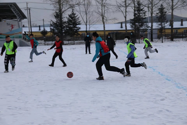 組織開展雪地足球比賽。作為學校的傳統(tǒng)特色項目,雪地足球的比賽成為全校的焦點。精心繪制的雪地足球場,為同學們提供了獨具興安特色的足球樂園。