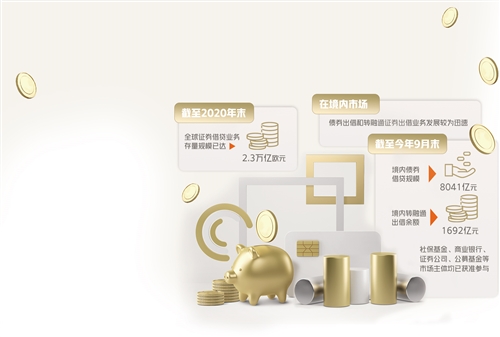 證券出借業(yè)務(wù)俗稱“融券”,是境內(nèi)外資本市場提高二級市場流動性的常見交易制度,發(fā)展較為成熟。截至2020年末,全球證券借貸業(yè)務(wù)存量規(guī)模已達2.3萬億歐元。在境內(nèi)市場,債券出借和轉(zhuǎn)融通證券出借業(yè)務(wù)發(fā)展較為迅速,截至今年9月末,境內(nèi)債券借貸規(guī)模8041億元,境內(nèi)轉(zhuǎn)融通出借余額1692億元,社保基金、商業(yè)銀行、證券公司、公募基金等市場主體均已獲準(zhǔn)參與。