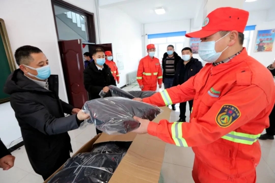 在森林消防大隊一樓活動室,司勇、張志良親切地與大隊干部職工交流談心,詳細了解森防隊員們的工作生活情況以及思想狀況,對他們“舍小家為大家”的敬業(yè)精神表示感謝,并逐一為隊員們分發(fā)了防寒羽絨服。“衣服大小合不合適,穿在身上暖不暖和……”深切話語讓森防隊員們備感關(guān)懷,備受鼓舞,喜悅之情溢于言表。