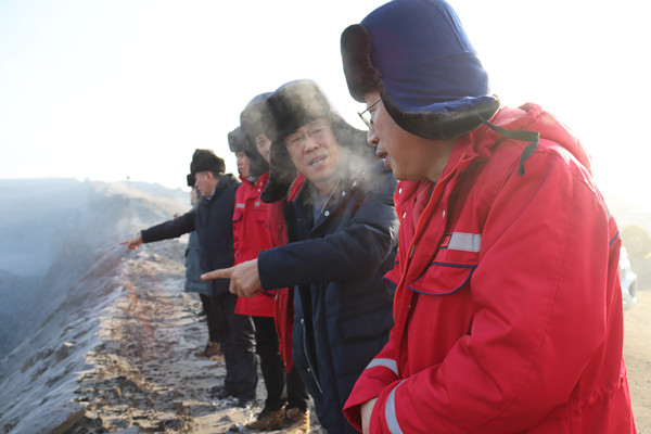 圖為古蓮河露天煤礦黨委書記帶領相關人員深入剝采一線檢查安全生產工作