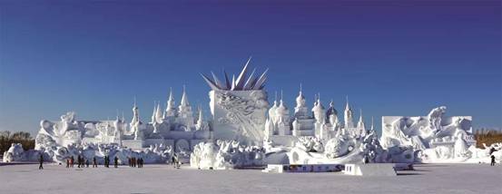 本屆哈爾濱冰雪大世界以長達550米的歷史最長景觀軸線,布置各組冰雪景觀,并將園區(qū)景觀劃分為冬奧之光、五環(huán)圣域、閃耀之巔、夢幻冰原、歡樂相聚、激情雪圈及雪山飛揚等七大區(qū)域,通過大氣磅礴的冰雪景觀、晶瑩剔透的冰雕建筑、流光溢彩的冰雪夜景、炫麗耀眼的燈光特效,打造壯美的冰雪王國,傳遞冰雪冬奧精神。