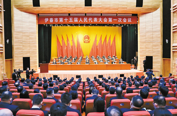 伊春市第十五屆人民代表大會(huì)第一次會(huì)議開(kāi)幕式現(xiàn)場(chǎng)。