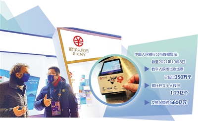 2017年起,人民銀行與商業(yè)銀行、互聯(lián)網(wǎng)公司等合作,共同進(jìn)行數(shù)字人民幣研發(fā)。2019年末,數(shù)字人民幣開始試點,目前,人民銀行已經(jīng)在深圳、蘇州、雄安、成都、上海、海南、長沙、西安、青島、大連等地和2022年北京冬奧會場景開展數(shù)字人民幣試點。中國人民銀行公布的數(shù)據(jù)顯示,截至2021年10月8日,數(shù)字人民幣試點場景已超過350萬個,累計開立個人錢包1.23億個,交易金額約560億元。