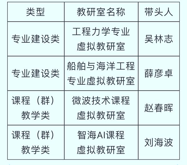 首批虛擬教研室建設試點名單