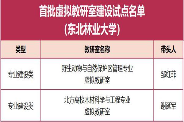 黑龍江經(jīng)濟網(wǎng)訊(黑龍江日報全媒體見習記者董廣碩 商祺)近日,教育部公布了首批虛擬教研室建設(shè)試點名單,東北林業(yè)大學野生動物與自然保護區(qū)管理專業(yè)虛擬教研室、北方高校木材科學與工程專業(yè)虛擬教研室獲批首批虛擬教研室建設(shè)試點。