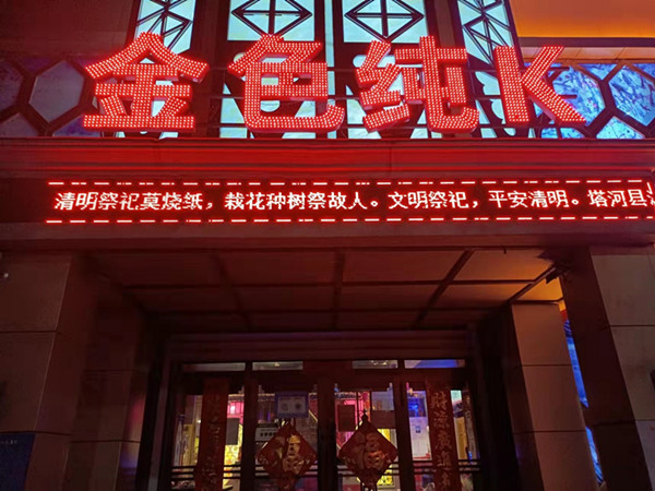 宣傳活動(dòng)中,塔河縣消防救援大隊(duì)緊密結(jié)合轄區(qū)工作實(shí)際,充分利用LED顯示屏具有宣傳效果好、時(shí)間不受限、受眾面廣等特點(diǎn),播放消防宣傳公益廣告和消防標(biāo)語(yǔ)滾動(dòng)字幕。各重點(diǎn)單位在播放本單位信息的同時(shí),將消防知識(shí)作為一項(xiàng)必播內(nèi)容,進(jìn)行全天候、不間斷播放,塔河縣消防救援大隊(duì)還定期對(duì)此項(xiàng)工作進(jìn)行督導(dǎo)檢查,確保播出頻次和播出數(shù)量達(dá)到宣傳效果,使廣大市民通過(guò)這種快捷、靈活的宣傳方式,隨時(shí)隨地觀看到主題鮮明、寓教于樂(lè)的消防知識(shí)宣傳。