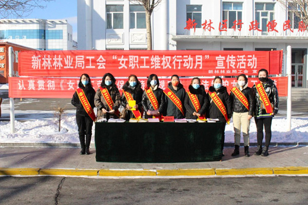 新林林業(yè)局工會女職工維權志愿者設置宣傳臺接受女職工維權咨詢(冀威威 攝)