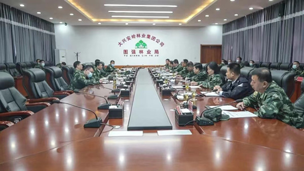 實地檢查結(jié)束后,大興安嶺林業(yè)集團(tuán)公司黨委副書記、總經(jīng)理、地區(qū)森防指總指揮李軍在圖強(qiáng)林業(yè)局防火辦三樓會議室主持召開座談會。