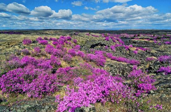 另一獨(dú)具北國(guó)風(fēng)光特色的是“興安杜鵑”,又稱“映山紅”“達(dá)子香”“達(dá)達(dá)香”,粉紅色的花朵與純白色的雪山是黑龍江高山叢林之間的春季奇景。其中,在牡丹江鏡泊湖景區(qū)及周邊熔巖臺(tái)地盛開的杜鵑花,林在石上、石在花中、花在石上,石海、花海、林海形成罕見(jiàn)的自然奇觀。此外,齊齊哈爾龍江縣的杜鵑山景區(qū)、以興安杜鵑為市花的伊春小興安嶺、雙鴨山的大頂子山、黑河的錦河大峽谷、大興安嶺的百泉谷生態(tài)旅游風(fēng)景區(qū)等地,都可以探尋到興安杜鵑的芳蹤。
