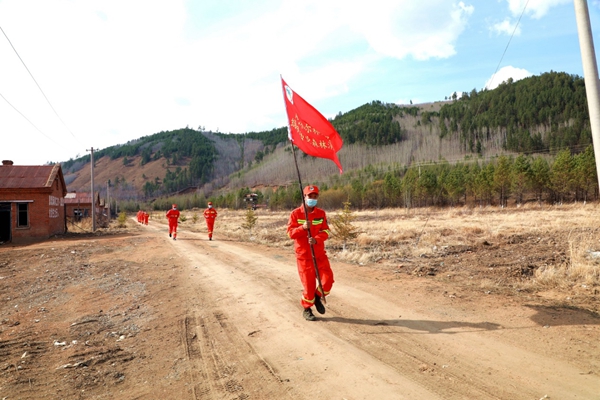 阿木爾林業(yè)局綠林林場(chǎng)專業(yè)撲火隊(duì)伍進(jìn)行輕裝快速行軍兩公里比賽(王力 攝)