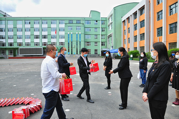 上午10時,活動開始。哈爾濱市第一一三中學(xué)操場上,初四年級各班班任整齊列隊,臉上洋溢著微笑。愛心企業(yè)踐行社會責(zé)任,為老師送上濃濃祝福和滿滿心意?;顒与m簡短,但愛與溫暖在每名教師心頭蕩漾,涌動著深情厚誼。
