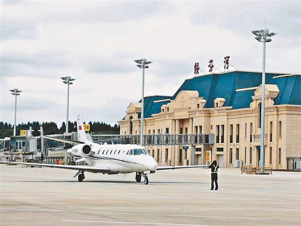 校驗飛機平穩(wěn)降落在綏芬河機場。圖片由省機場集團提供