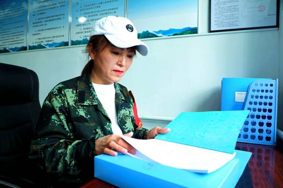 阿木爾林業(yè)局長山林場1—0—1—2線管護(hù)站有水有電有手機(jī)信號,管護(hù)員趙娣在干凈舒適的工作環(huán)境整理防火內(nèi)業(yè)(王力 攝)