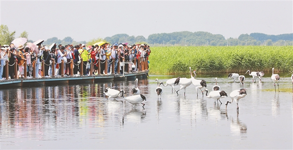 15日,第二個(gè)“鄉(xiāng)約扎龍·情滿鶴城”——“扎龍齊齊哈爾市民日”全面啟動。當(dāng)日天藍(lán)水碧,徐徐微風(fēng)拂過,眾多游客來到國際重要濕地之一的扎龍濕地感受濕地風(fēng)光的壯闊之美,欣賞鶴舞云翔的自然之美。馬麗娟 宋燕軍 黑龍江日報(bào)全媒體記者 姚建平攝