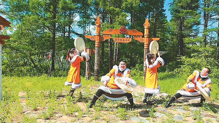 在新生鄂倫春族鄉(xiāng),舞蹈演員們伴隨著鼓聲跳動(dòng)著,生動(dòng)展示著鄂倫春族舞蹈和服飾。在民族體驗(yàn)區(qū),非遺傳承人拿出看家本領(lǐng),紛紛展示非遺魅力,鄂倫春族剪紙、樺樹皮制作、刺繡、皮袍制作……鄂倫春族原汁原味的傳統(tǒng)技藝一一呈現(xiàn)眼前。